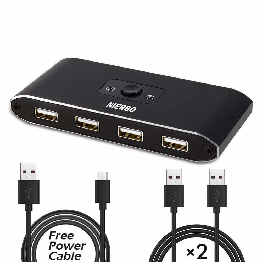 USB Switcher Hub, 2 Computers Sharing 4 USB 2.0 Devices USB Keyboard and Mouse Switch Box Selector 2 in 4 Out for Printer Scanner with Micro USB Power Cable and 2 USB A Cable