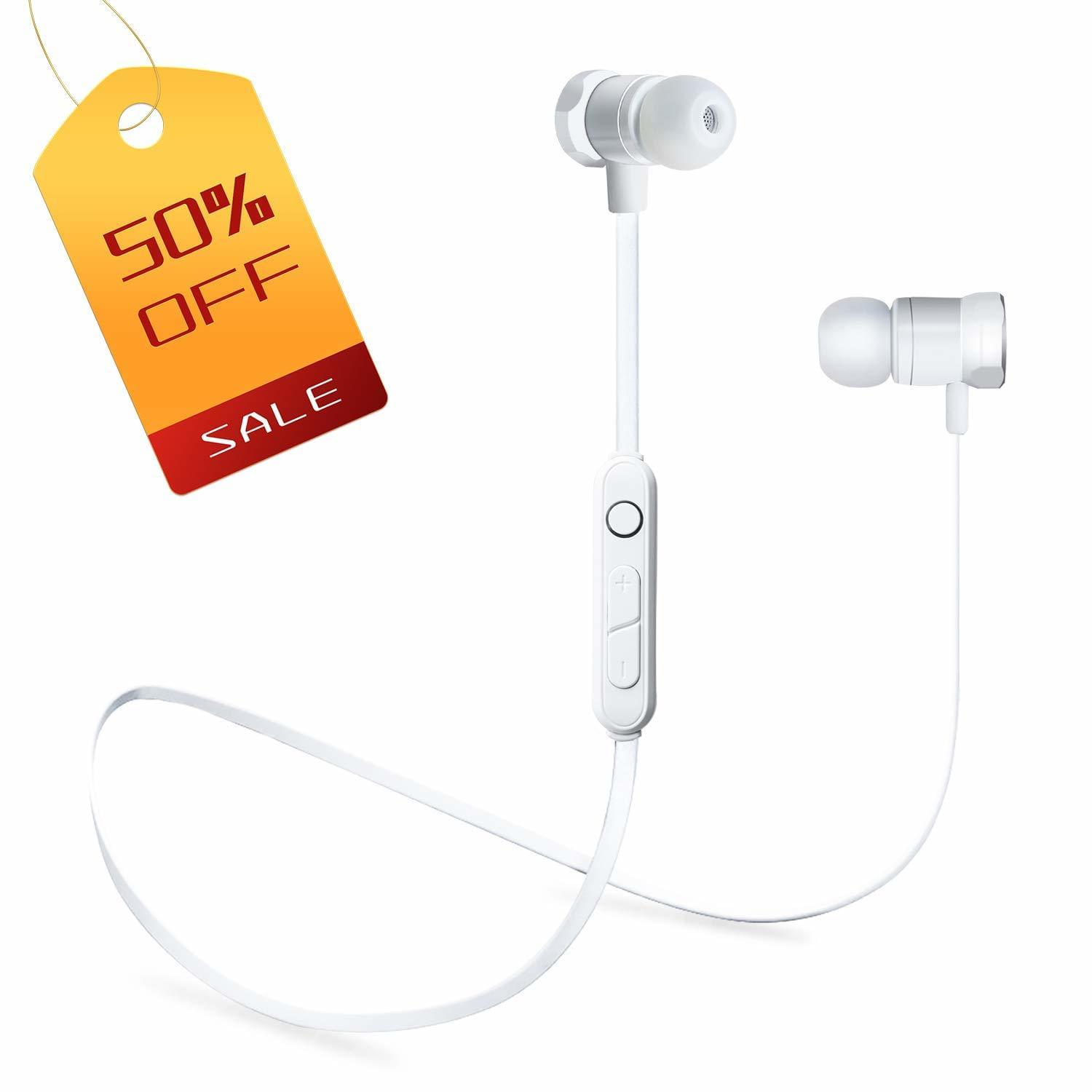 NIERBO Code: BH250OFF Magnetic Bluetooth Earphones Wireless, Anti-Fall off Sport Bluetooth Headphones In-Ear with HD Mic, IPX4 Waterproof, Lightweight Comfy for Running WHITE